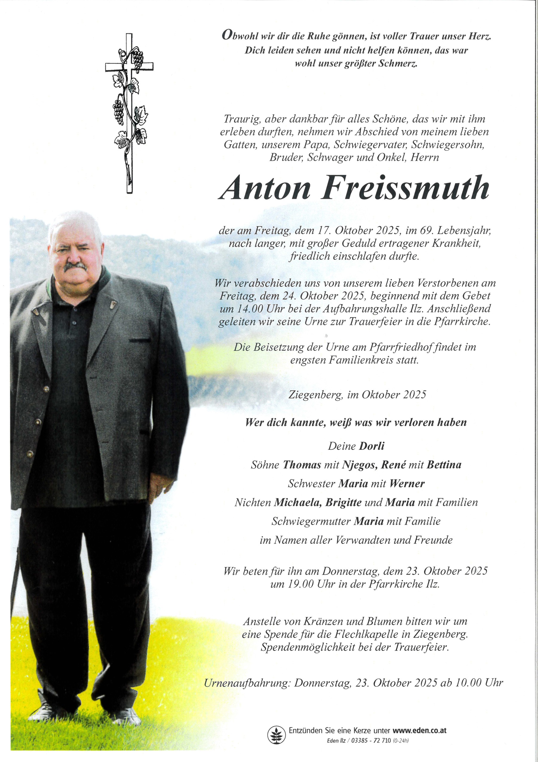 Urnenaufbahrung: Donnerstag, 23. Oktober 2025 ab 10.00 Uhr