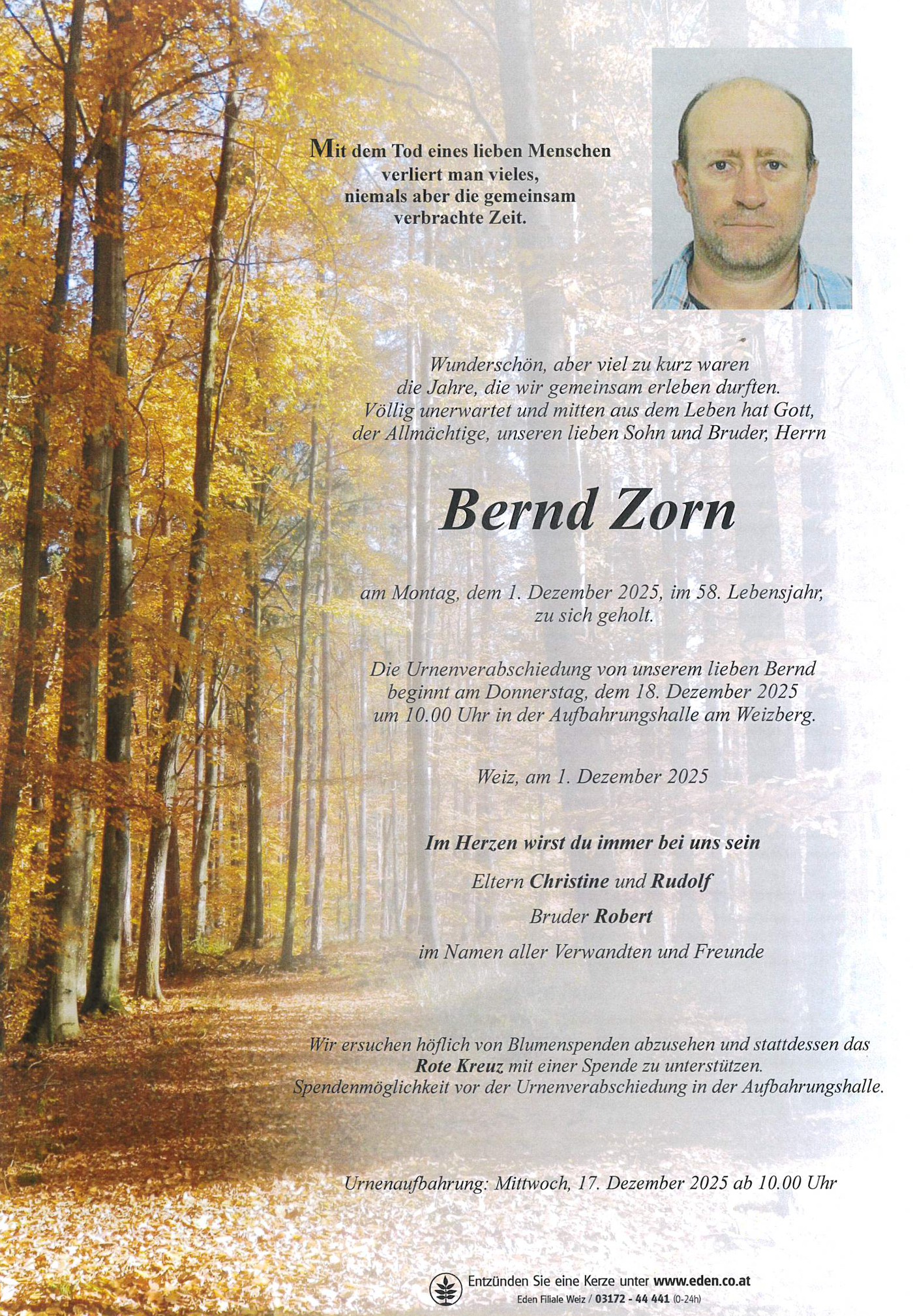 Urnenaufbahrung am Mittwoch, dem 17. Dezember 2025 ab 10.00 Uhr