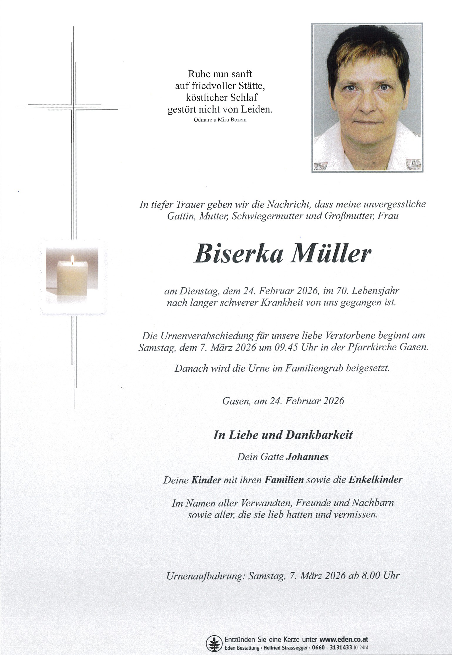 Urnenaufbahrung am Samstag, dem 7. März 2026 ab 8.00 Uhr