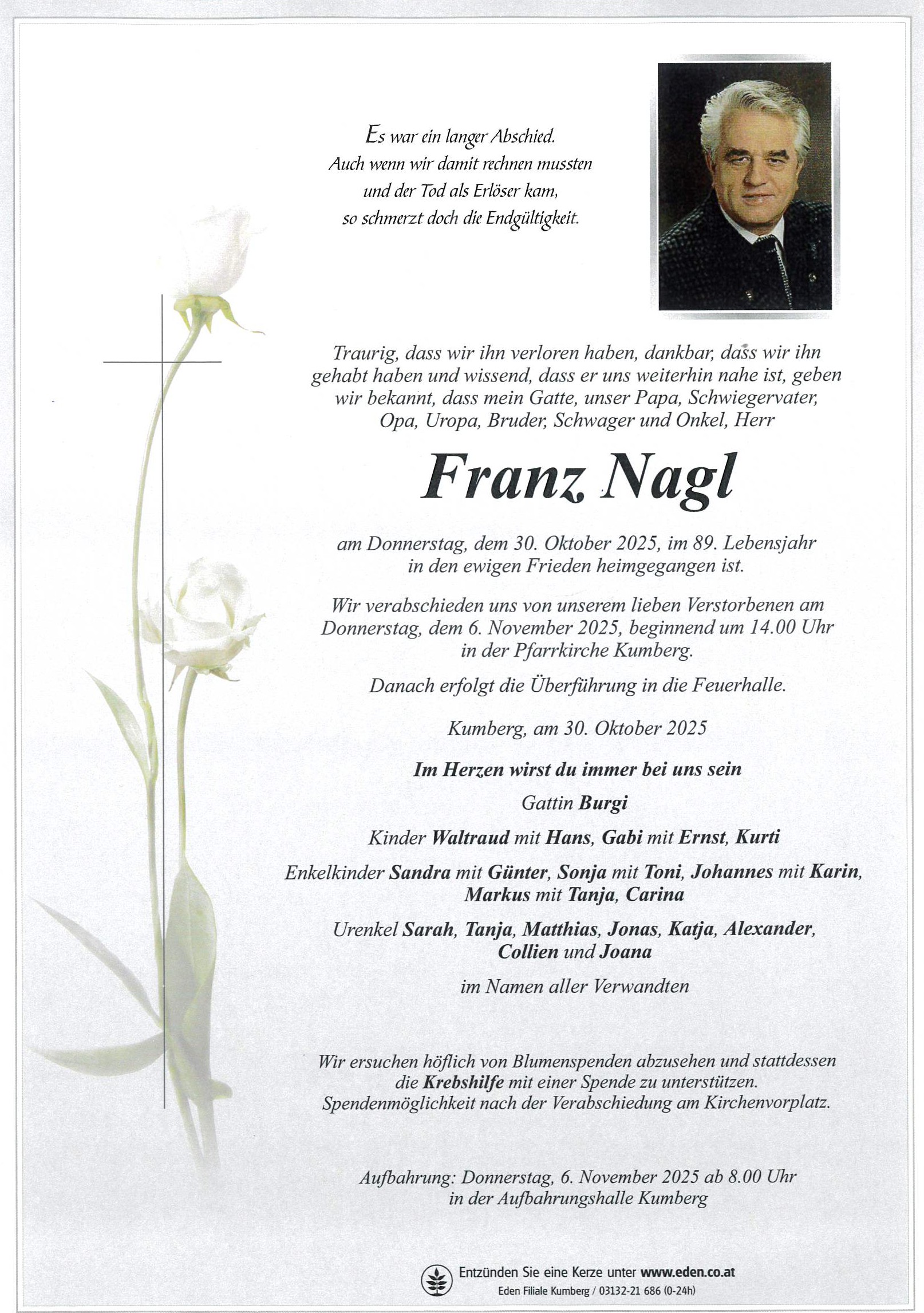 Lieber Onkel Franz! Ruhe in Frieden. Unsere Gedanken sind bei dir und deiner lieben Familie. Wir werden dich nicht vergessen. Margit u. Hara