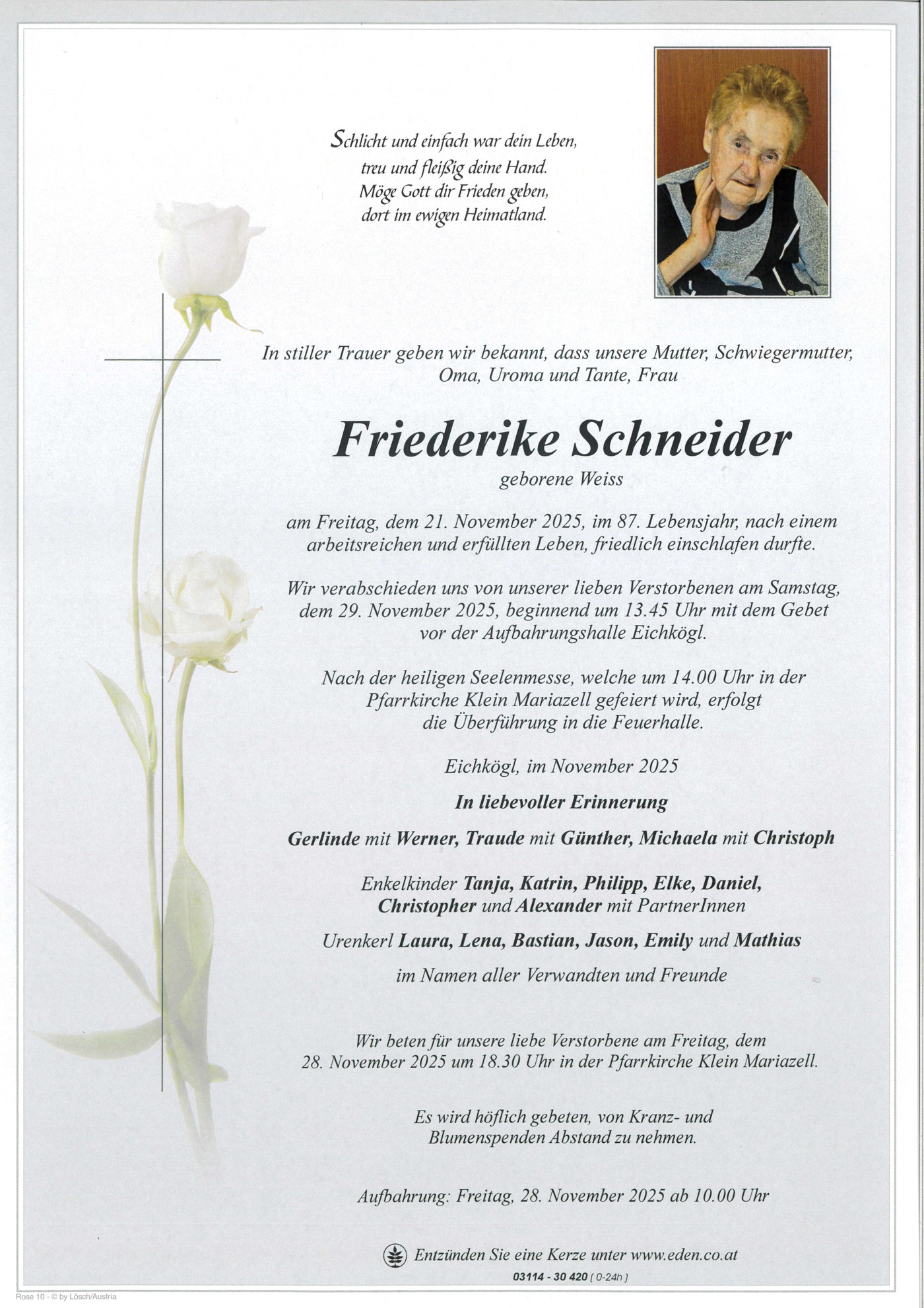 Aufbahrung am: Freitag, 28. November 2025 ab 10.00 Uhr