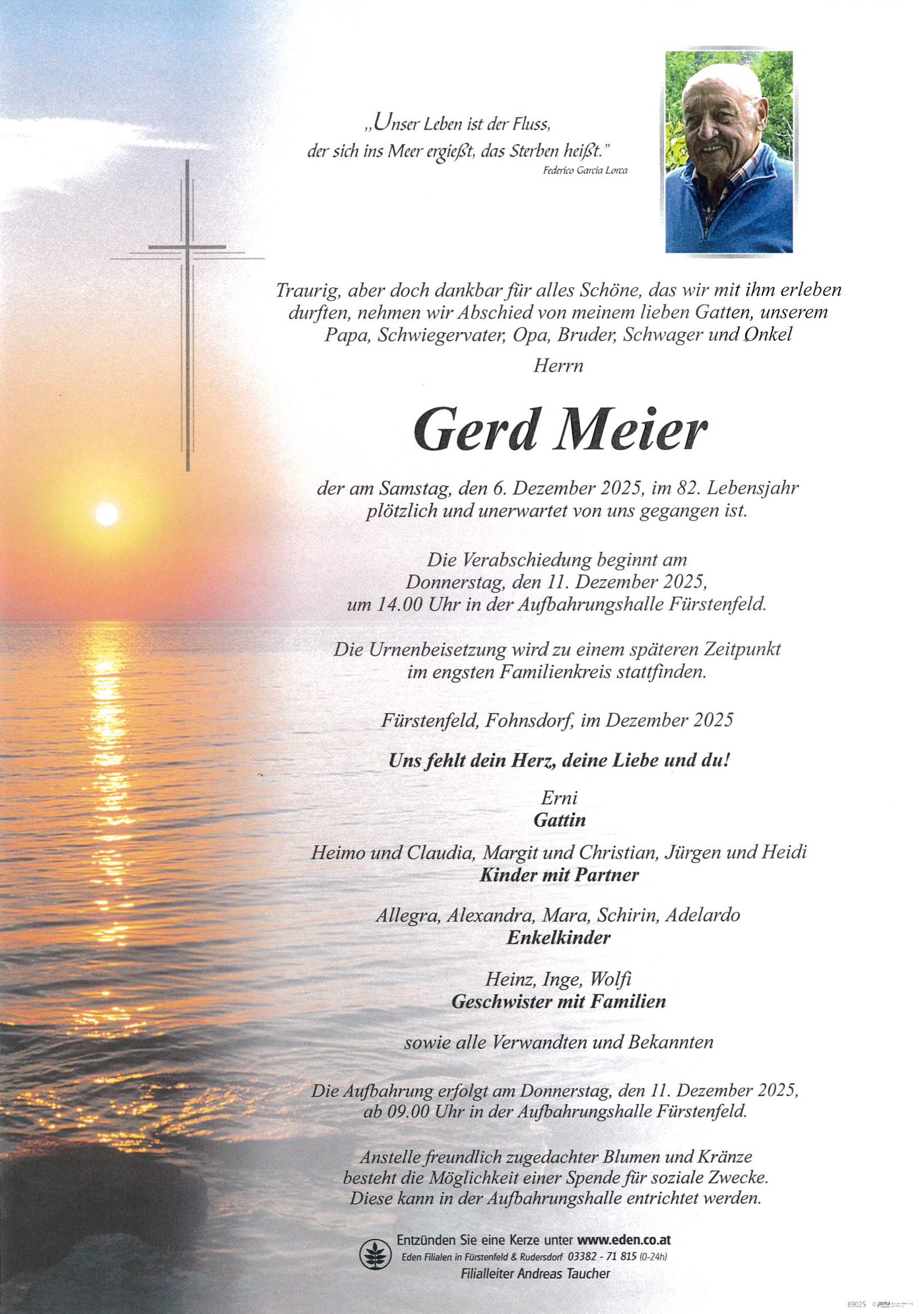 Aufbahrung am Donnerstag, dem 11. Dezember 2025 ab 9.00 Uhr