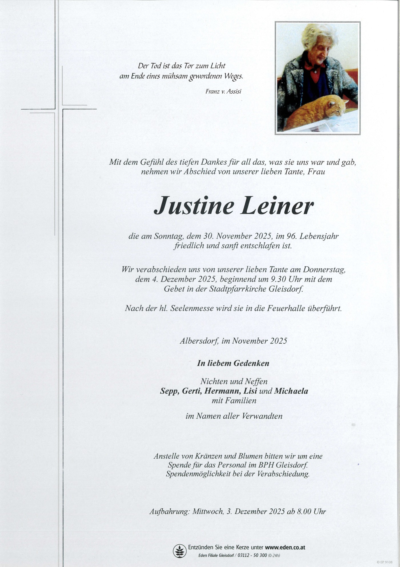 Justi, danke für deine Nachbarschaft die Gespräche und die Kaffetratscherl bei dir. In stiller Anteilnahme, Ingrid und Liane