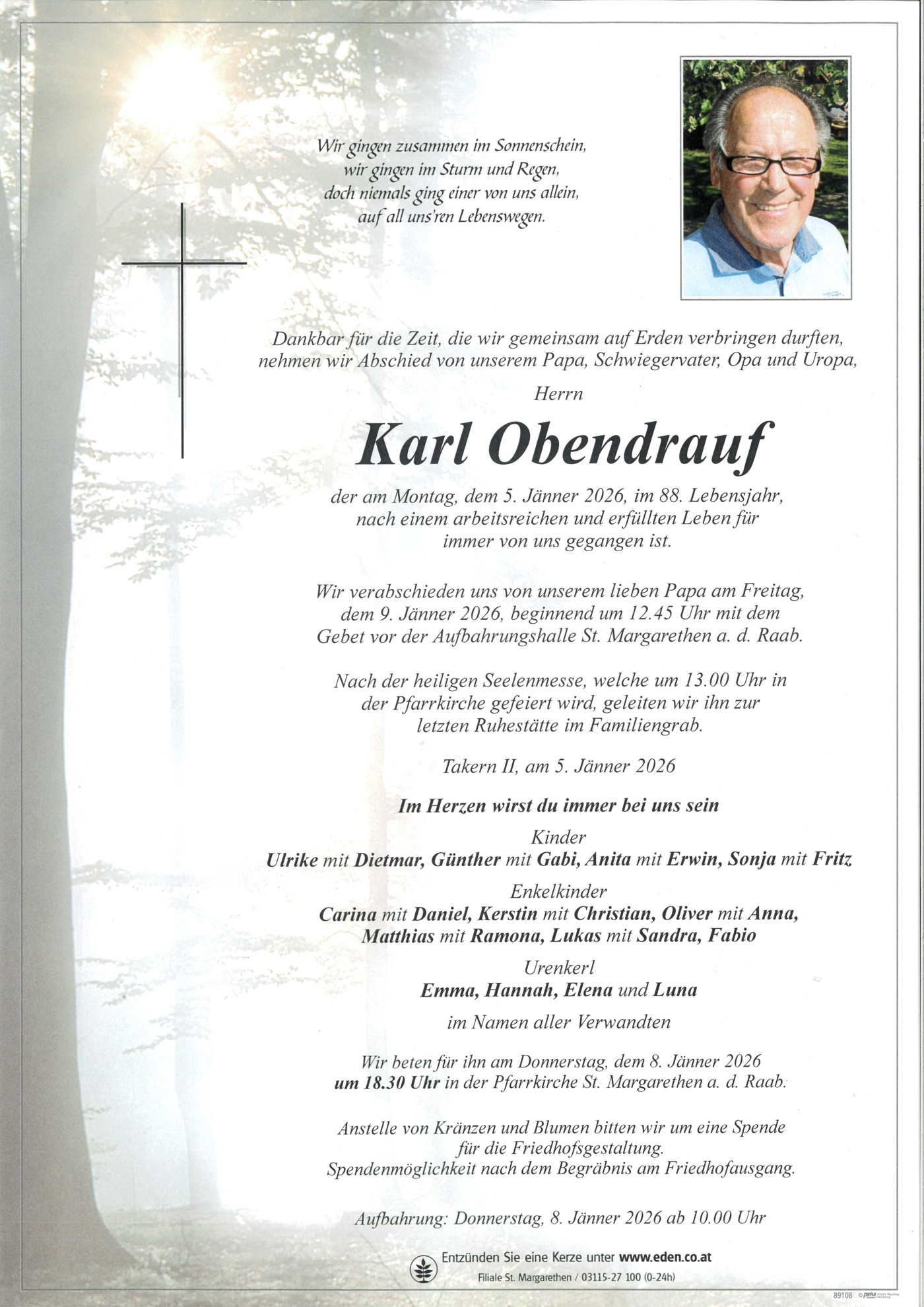 Aufbahrung am: Donnerstag, 8. Jänner 2026 ab 10.00 Uhr