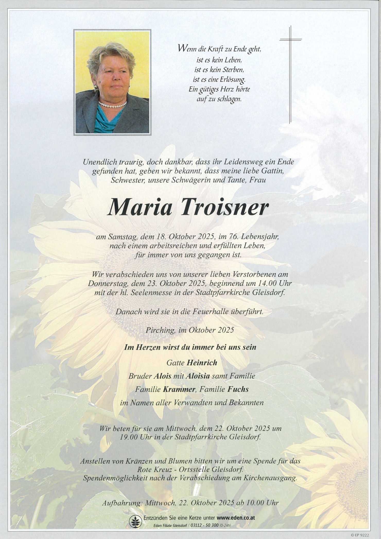 Aufbahrung am Mittwoch, 22.10.2025 ab 10 Uhr
