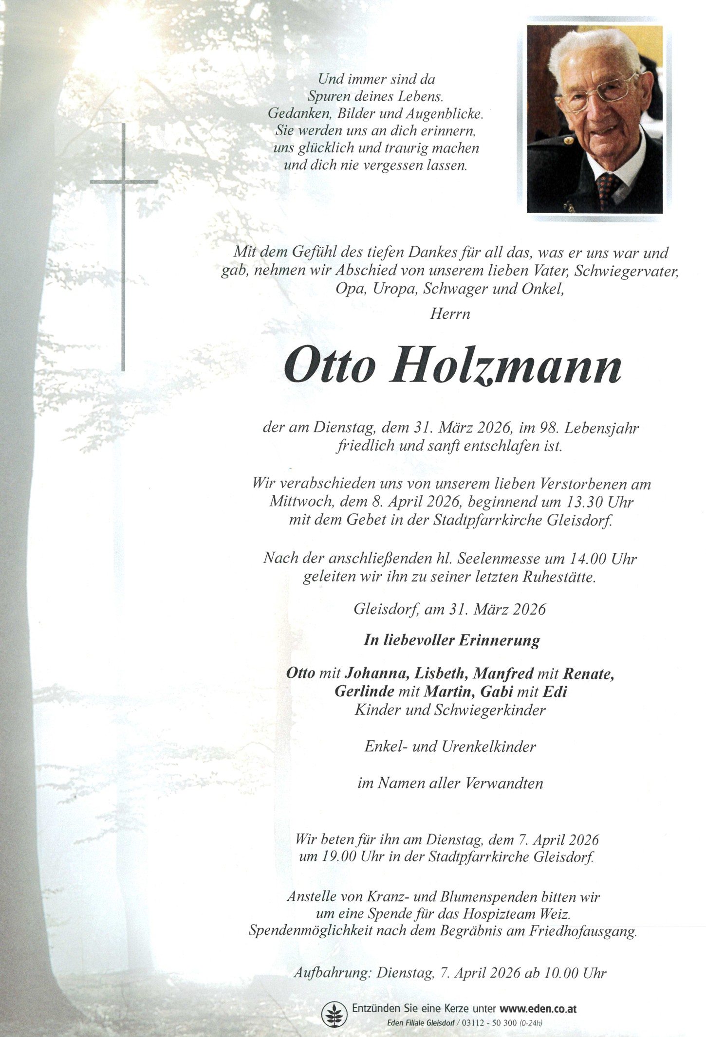 Aufbahrung am Dienstag, 07.04.2026 ab 10.00 Uhr
