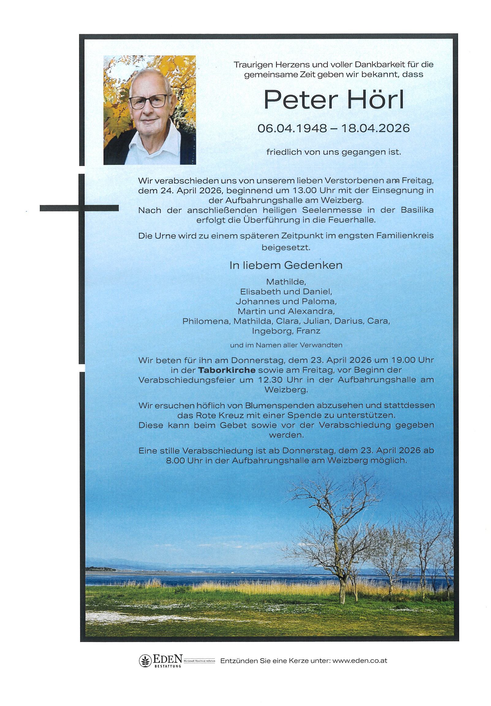 Aufbahrung am Donnerstag, dem 23. April 2026 ab 8.00 Uhr
